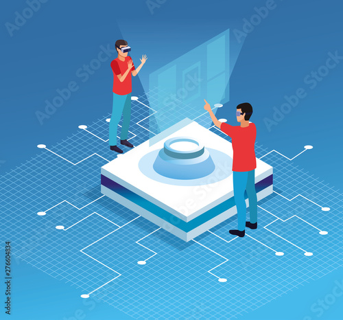 Isometric smartphone, 5g rocket startup. People talking on mobile phones, watching video on laptop computer, jogging with smart watch, vector illustration. 5g network wireless systems.