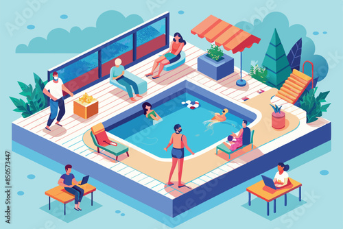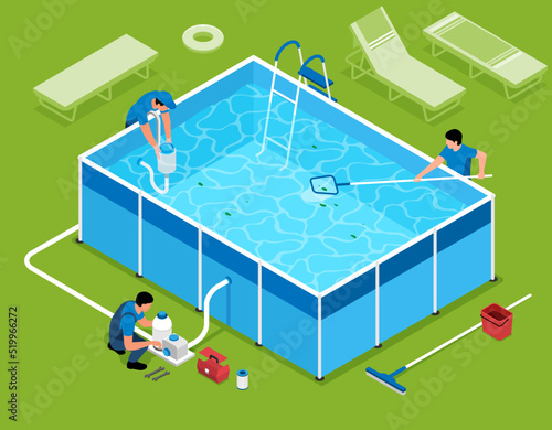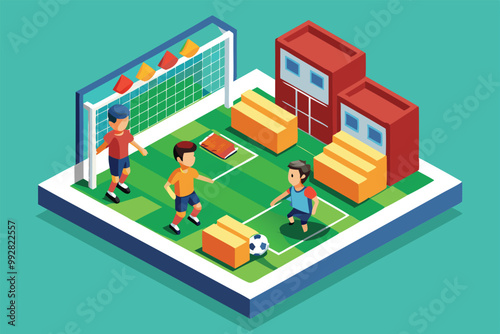 Isometric tennis stadium with outdoor court and tribune, flat vector illustration. Sport field with players and fans watching tennis match, infographic element.