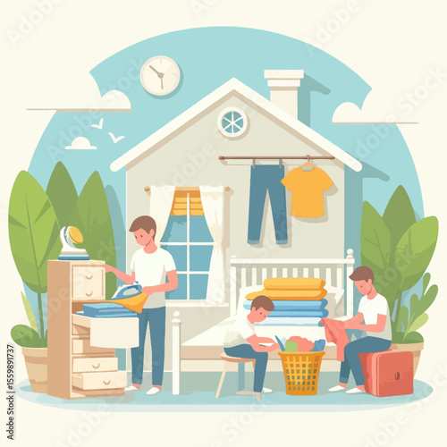 Jenga landing page design, website banner template set, flat vector illustration. Happy people playing jenga board game, sitting on the floor. Home leisure activity.