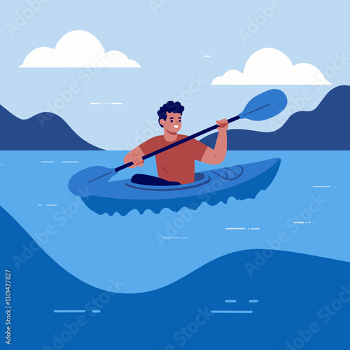 Vector illustration of man riding water scooter. Jet ski flat style design element.