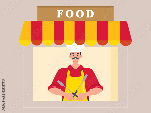 Vector illustration of young man looking at jewelry shop display case. Jewelry store concept flat style design element
