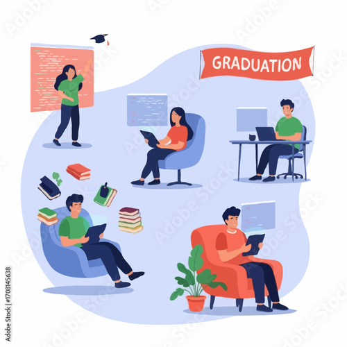 Job search male and female cartoon character set, vector isolated illustration. Job candidates with newspaper, cv, laptop, mobile phone looking for work. Employment, recruitment, career.