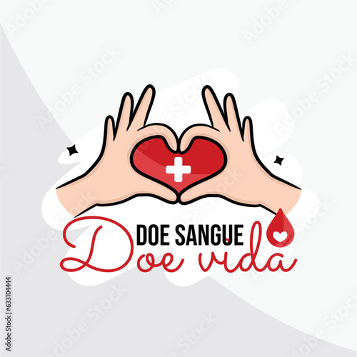 June 14, World Blood Donor Day poster template. Donor hand giving blood saving life and receiving heart in return, vector illustration in paper art style.