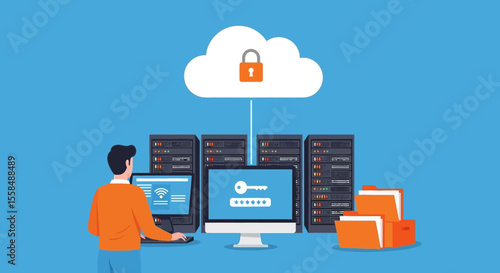 Kanban concept vector flat illustration. Human hand moving cards on task board, computer with brain on screen, gears etc. Agile kanban methodology composition for web banner, website page etc.