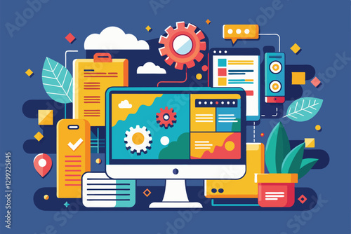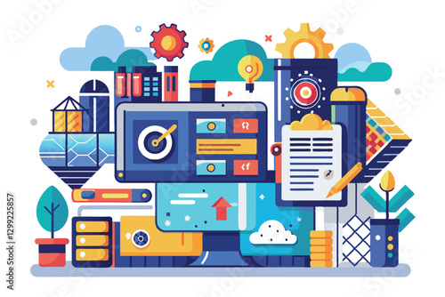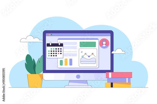 Kanban vector flat illustration. Kanban cards on whiteboard, rocket, clipboard with checklist. Agile methodology for startup business, visual process management concepts for web banner, website page.