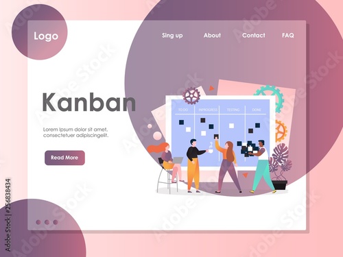 Kanban vector website template, web page and landing page design for website and mobile site development. Agile kanban methodology, collaboration concepts.