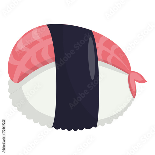 Kawaii japanese sushi with salmon fish slice vector. Asian food funny character isolated on white background