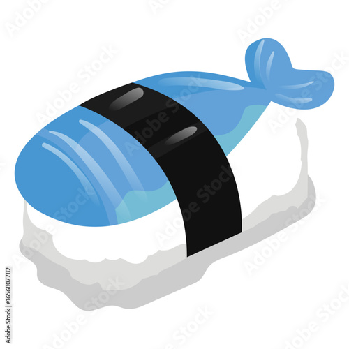 Kawaii sushi with octopus tentacle vector. Funny japanese food cute cartoon icon. Happy nigiri oriental seafood face isolated on white background