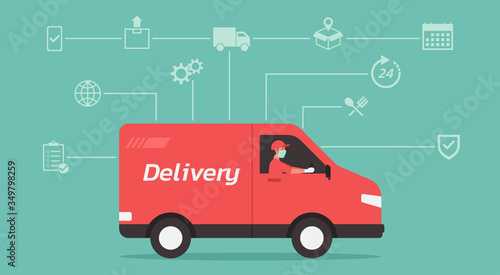 Ketchup transportation by delivery truck vector icon isolated on white background