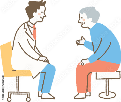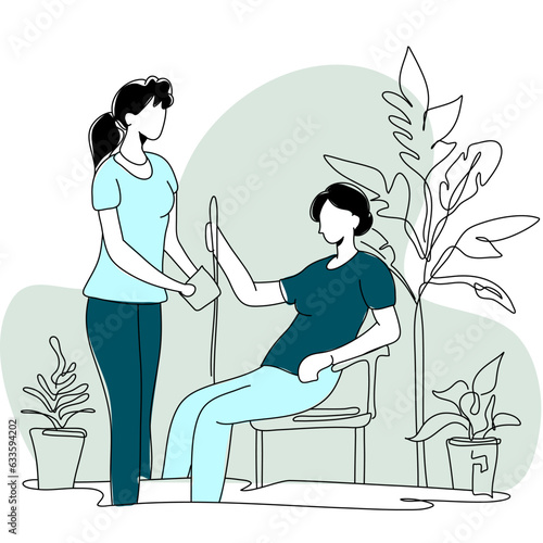 Kid checkup. Doctor pediatrician examining baby sitting on mom knees, flat vector illustration. Kids medicine. Pediatrics.