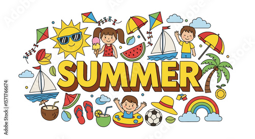 Kids game zone colorful inscription for playroom decoration. Poster, logo, banner style for child entertainment advertisement. Fun party emblem for school or kindergarten classroom