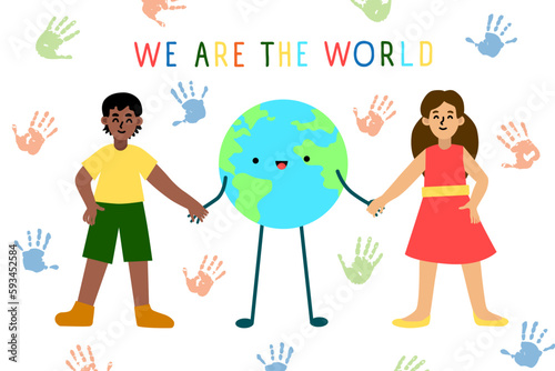 Kids painting party vector illustration with happy children drawing using paints, pencils, felt-tip pens markers, multi-colored crayons. Happy childhood entertainment