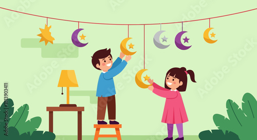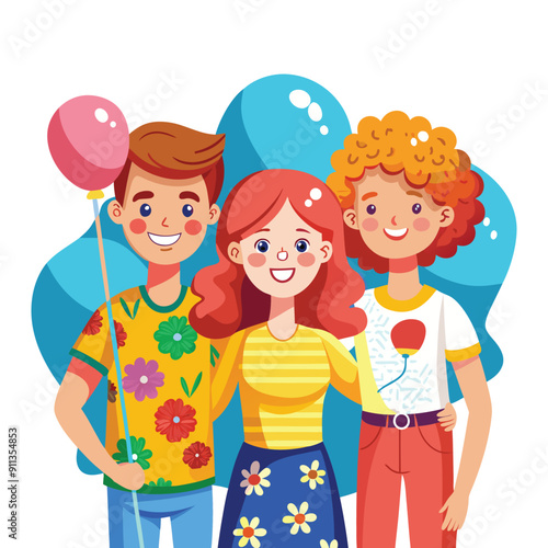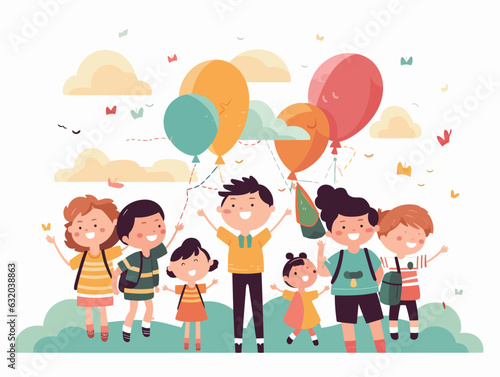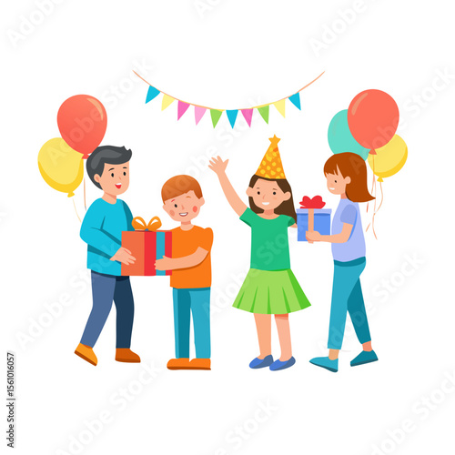 Kids party isolated scene set. Happy children having fun amusement entertainment enjoying joyful pastime vector illustration. Birthday, festival event or performance