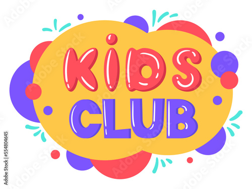 Kids party logo vector. Child play zone for game and birthday celebration label. Playground area for children emblem isolated on white background