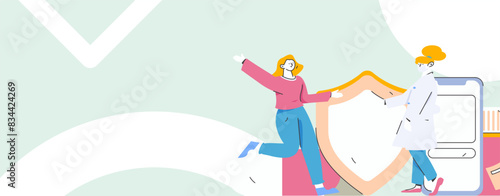 Kids soccer school, vector flat illustration. Coach teaching children to play soccer game on field. Football coaching, children soccer training.