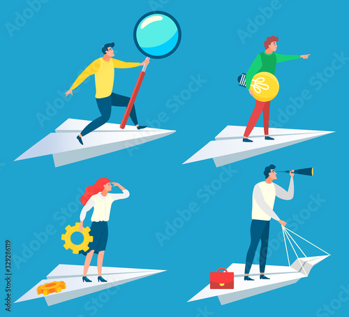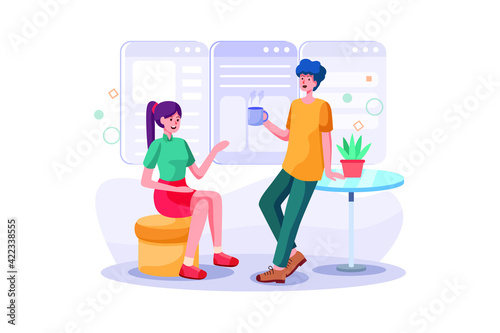 Kids studying languages with online teacher, flat vector illustration. English language class, course. Online education, tutoring, home schooling, distance learning.