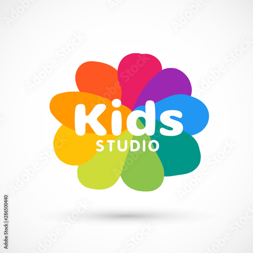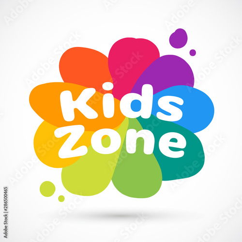 Kids zone label vector. Playground game and fun area icon. Child play room for party entertainment and leisure activity. Cartoon bubble, ray design badge isolated on white background