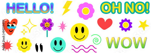 Kids zone entertainment banner set, vector illustration isolated on white background. Children playground, game room or center logo.