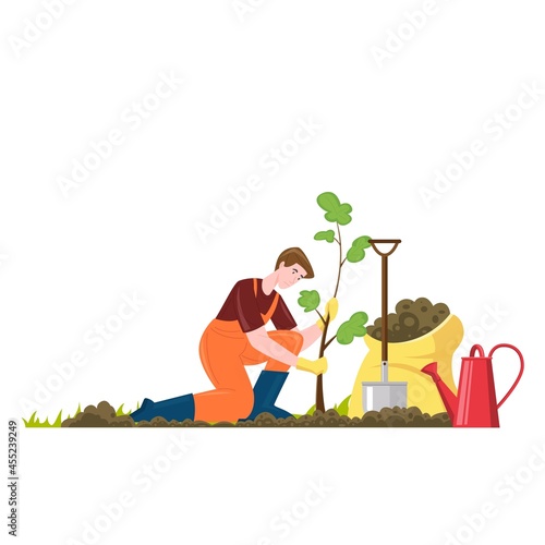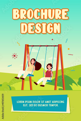 Kindergarten upbringer concept vector illustration. Preschool teacher meeting girl, attending playschool, with her mother in playground in the morning. Flat style design.