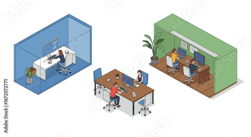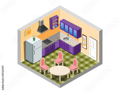 Kitchen interior constructor, vector flat isolated illustration. Isometric cutaway rooms empty and with furniture, window, door, home appliances. Kitchen creator.