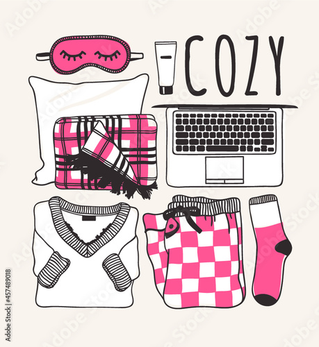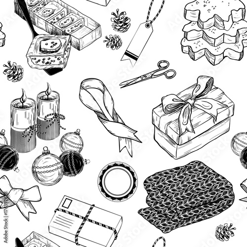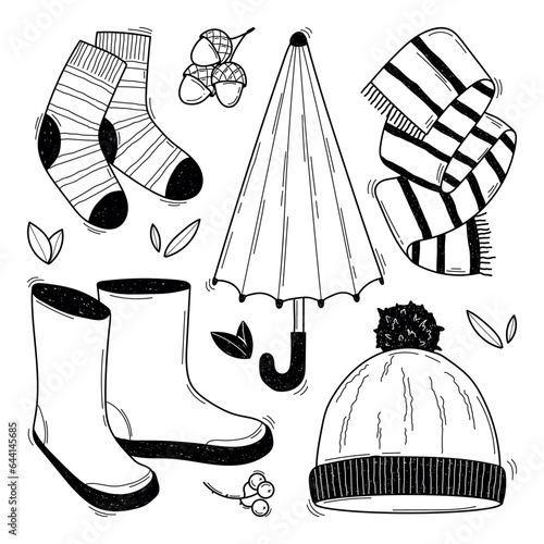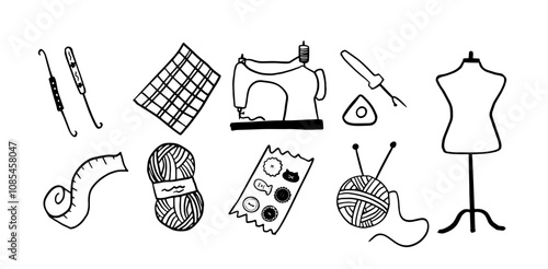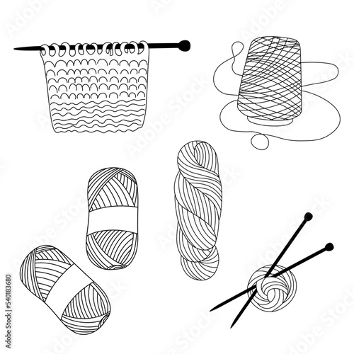 Knitting and crochet set, vector ink hand drawn illustration isolated on white background.