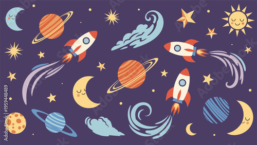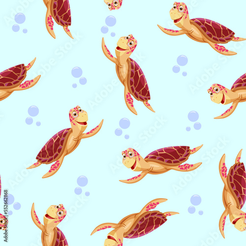 Koi fish swimming in pond with beautiful water lilies, flat vector illustration. Lake with decorative japanese carp fishes and lotus flowers, top view.