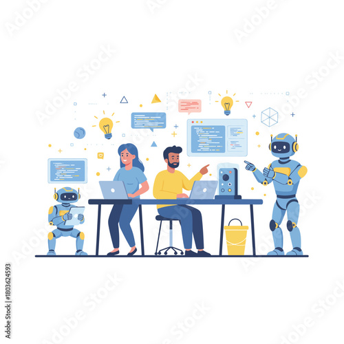 Robotics technology landing page template. Vector people building programming huge robot. Online service for AI hardware and software engineering concept
