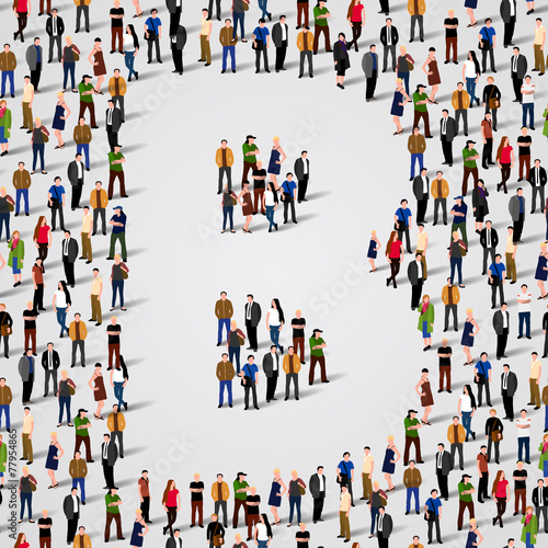 Large group of diverse people standing making up word WE. Influencing a crowd of man and woman characters, propaganda and attracting human masse to common opinion