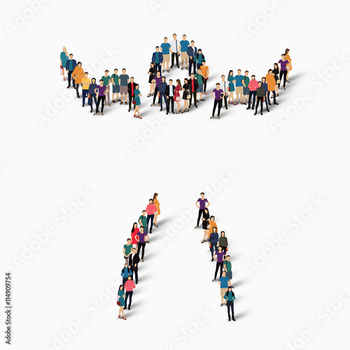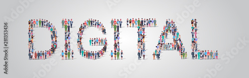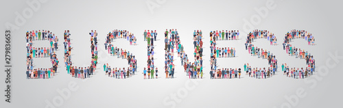 Large group of people standing together forming Team word, flat vector illustration. People crowd gathering. Team work typography banner. Business concept.