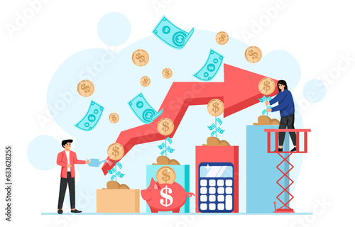 Last sale. Retail online store. Male and female characters with megaphone, price tags, gift boxes, flat vector illustration. Online deals, discounts and clearance sales.