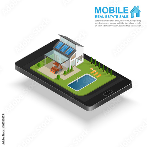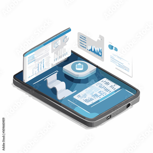 Online laundry services concept vector illustration. Laundry mobile 3d flat isometric icon.