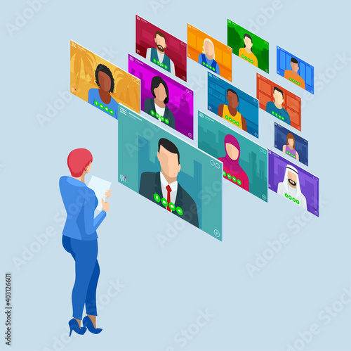 Cutaway laundry reception interior with receptionist and customer characters, flat vector isometric illustration. Laundry service.