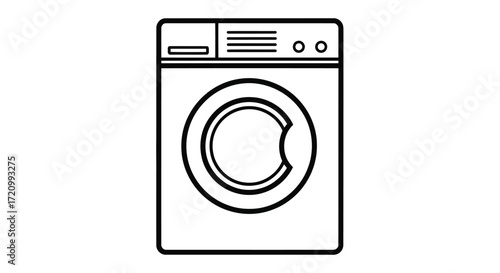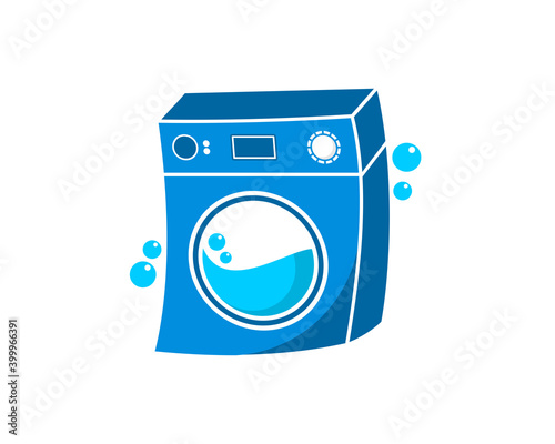 Laundry self service flat vector banner template. Linear poster with washing powder, automatic washing machine, folded neat clean linen stack illustration
