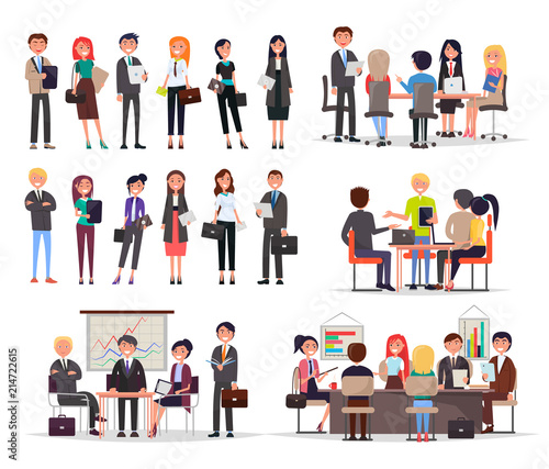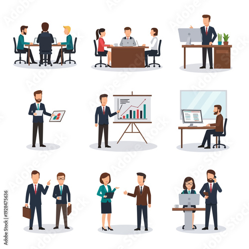 Vector illustration of professional judge, lawyer, jury, police officer, witness and defendant. Law court people symbols, icons isolated on white background. Flat style design.