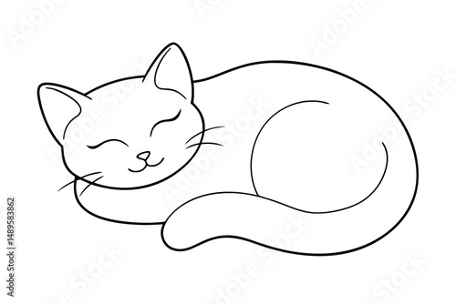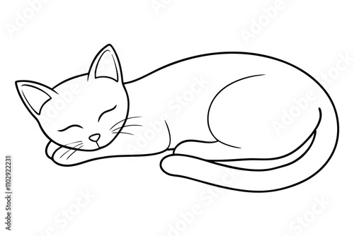 Lazy cat sleeping vector. Kitten napping icon. Cute cartoon pet animal fall asleep, rest isolated on white background