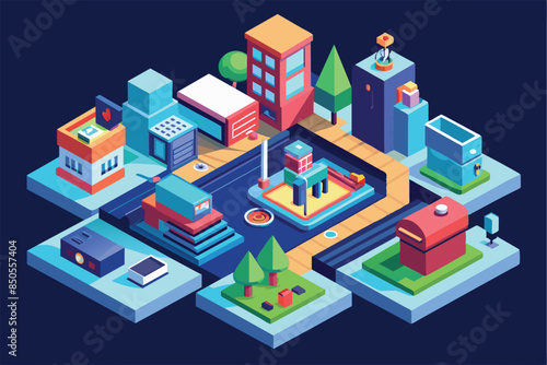 Learning game, landing page design, website banner template, flat vector isometric illustration. Kids playing word search puzzle games, assembling pictures of animals.