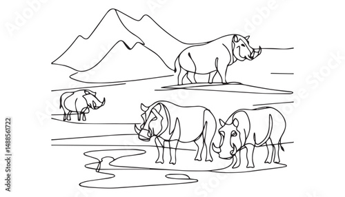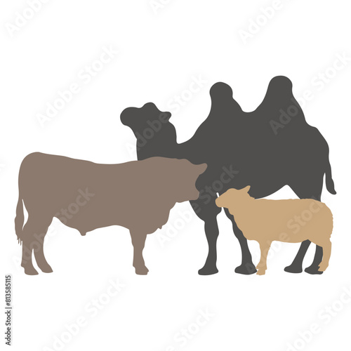 Lion animal silhouette isolated on white background. Vector illustration design in paper cut style. African lion and savannah double exposure.