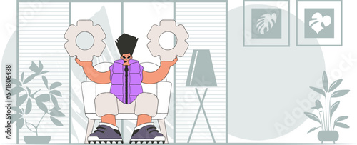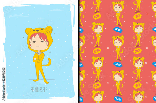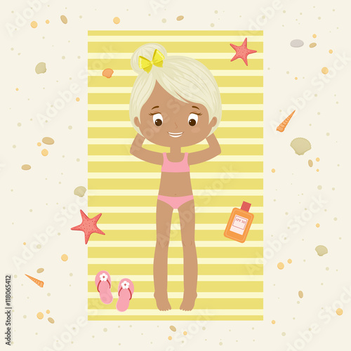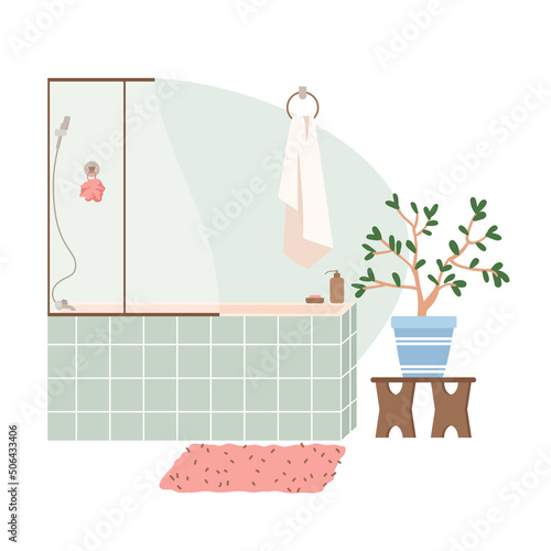 Little boy child character taking shower at home vector illustration. Children everyday hygiene routine concept