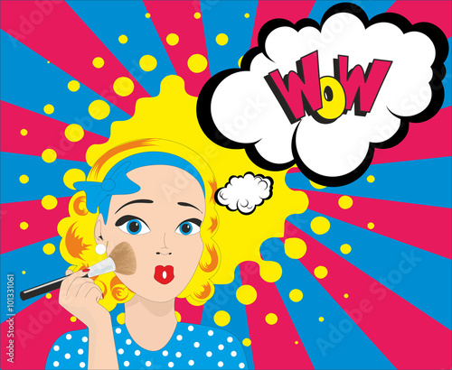 Little girl thinking about something. Vector illustration in comic retro pop art style.