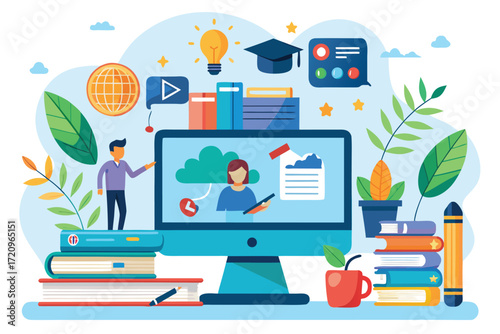 Live streaming, broadcast. Podcast concept illustration. Vector web site design template. Woman blogger, online stream in studio.