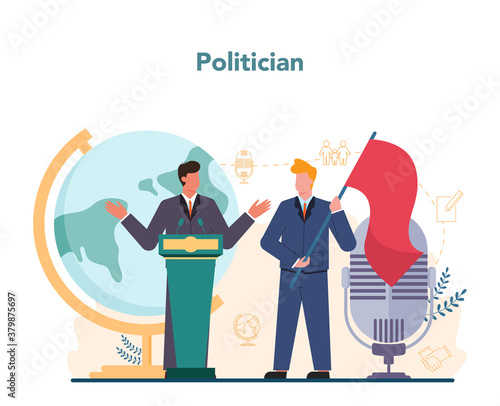 Live tv debate, political dialog between candidates, politicians, opponents male characters vector flat isolated illustration. Political meeting, talk show, election campaign, dispute, public speaking