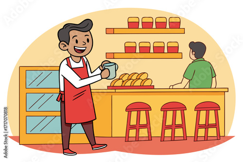 Local food market. Man, ecologist buying organic fruits and vegetables at farmers market, flat vector illustration. Eco farm products, fresh natural foods.