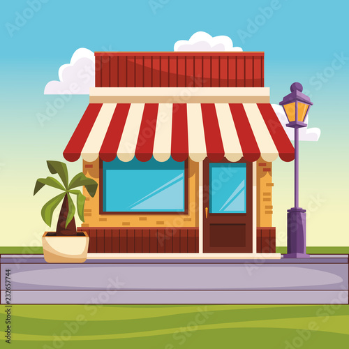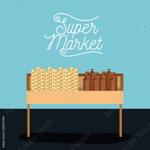 Local market food stalls, farmer shops. People buying fruits, spices, fish, meat, cheese, bread, flat vector isolated illustration. Purchase and sale of natural organic food, eco farm products.