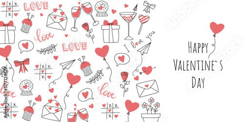Love advertising vector illustration. Modern thin line art flat style design element with Saint Valentines day love romantic symbols, icons for website banners and printed materials.