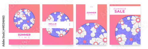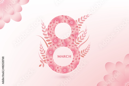 Love word made of beautiful paper cut pink flowers and hearts. Wedding invitation, Valentines Day greeting card design. Vector illustration in paper art style. Floral Love typography banner template.