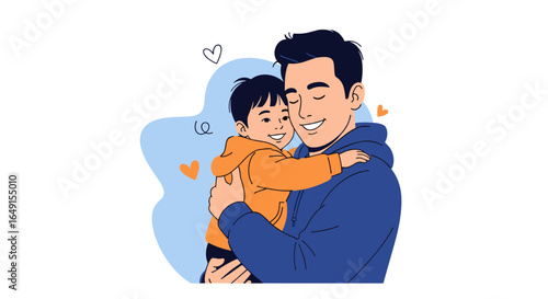 Loving father supporting crying daughter sitting on parent knees vector illustration isolated on white background. Nice conversation, parent and child communication concept