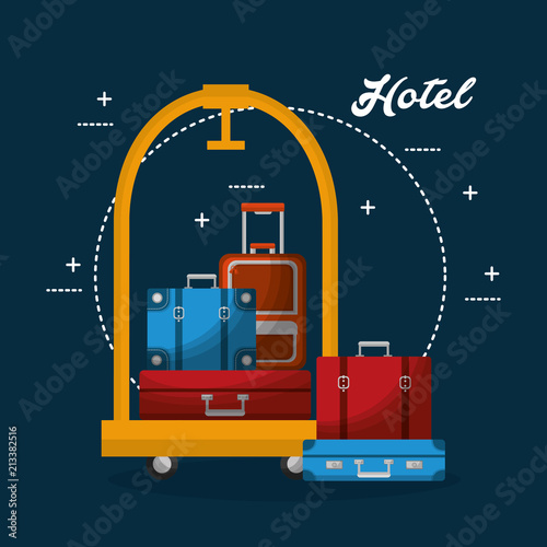 Luggage trolley cart icon. Vector hotel service. Suitcase baggage travel bag transportation