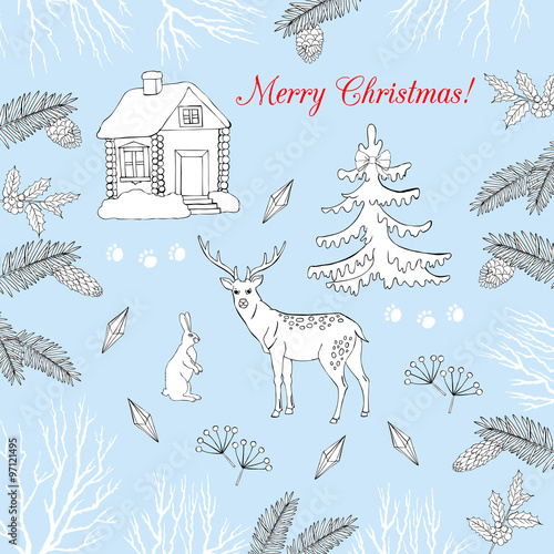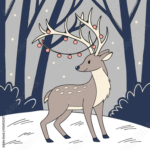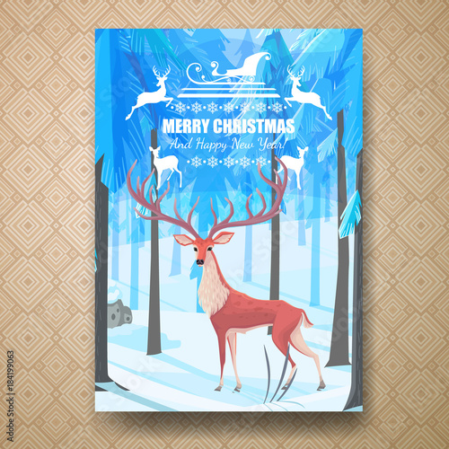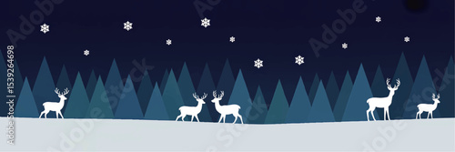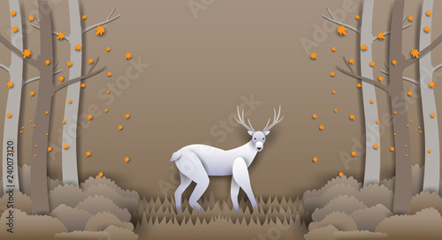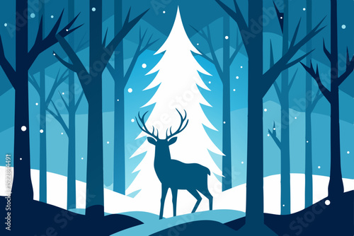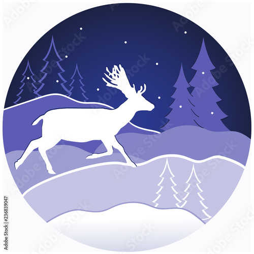 Vector layered paper cut style fairytale composition. Magic unicorn in the woods at night, mythical fairy tale character silhouette. Beautiful fairytale scene in white and blue colors.