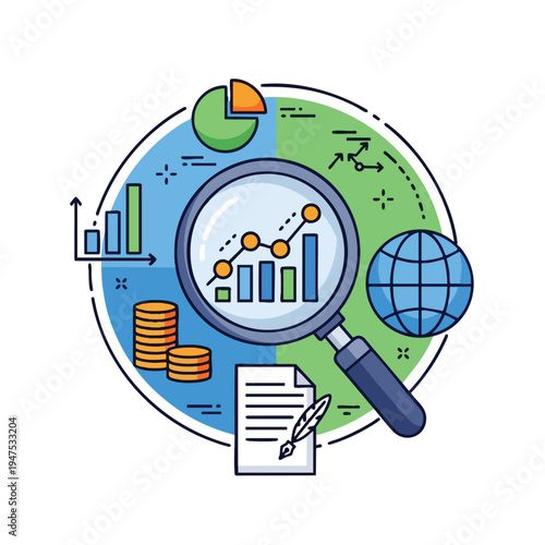 Magnifying glass with city elements inside, vector illustration in paper art style. Search for house, real estate concept.