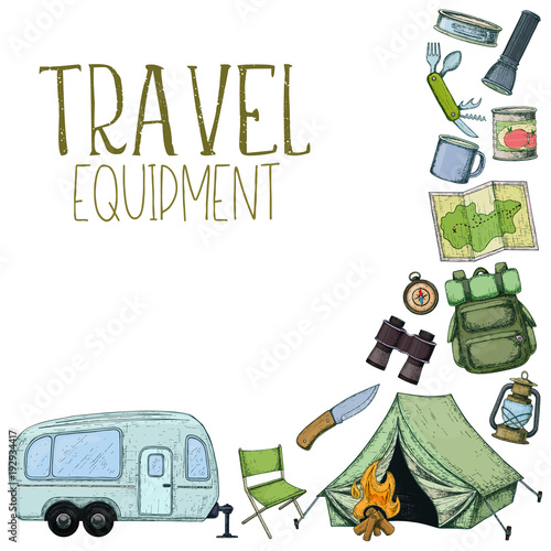 Make sports vector flat illustration. Water bottle, whey protein container, football soccer ball, first place gold medal, shoe, smartwatch or fitness tracker. Sport and physical activity poster banner